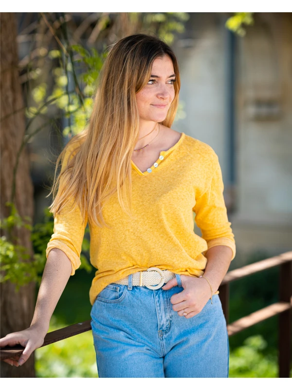 Tee-shirt col tunisien manches 3/4 pinocchio de la marque Lacomy.